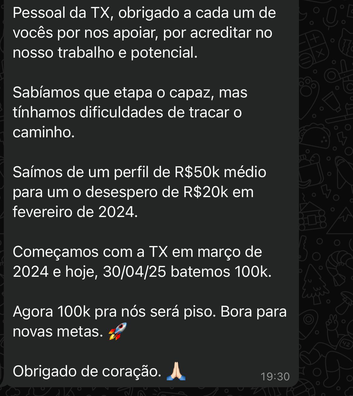 * Todo o método, os criativos, as campanhas, o funil, a forma de atendimento…